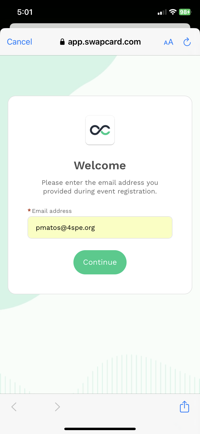 Once the Swapcard App is downloaded, follow the instructions below. Note: Use the email address and password you used to register for Responsible Plastics 2025.